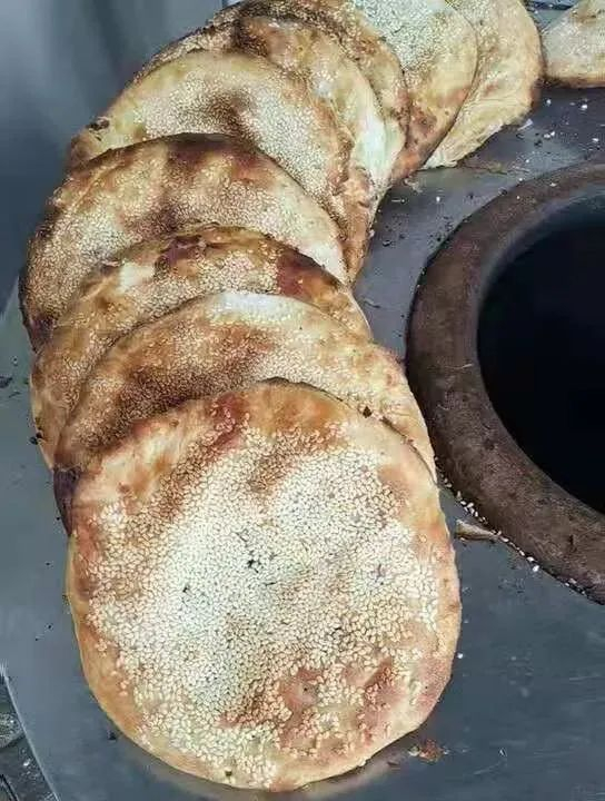 苏北大饼出炉,有小麦的香气,也有淡淡的碱味,这碱味在早上特别挠人胃。