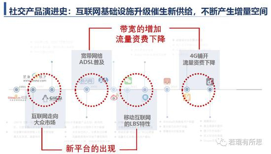 (一) 从产业史看投资趋势:互联网基础设施升级催生新供给掀起四波社交浪潮