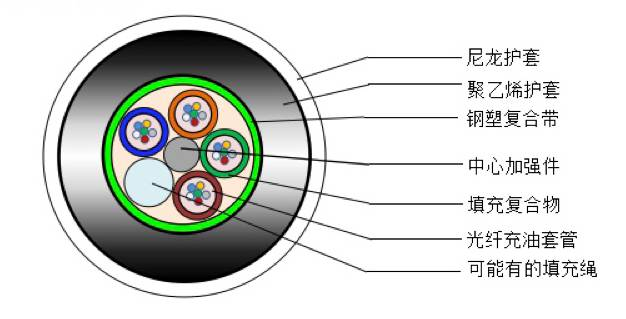 "室外用、油膏填充、钢-聚乙烯内护套聚乙烯+尼龙外护套"