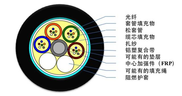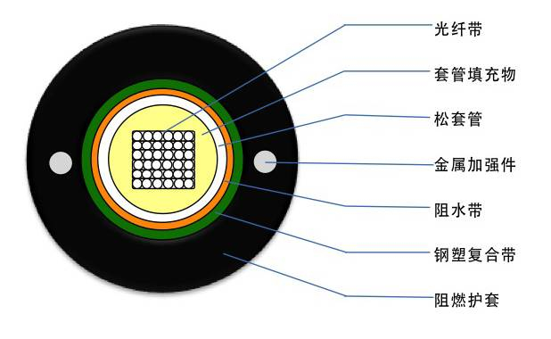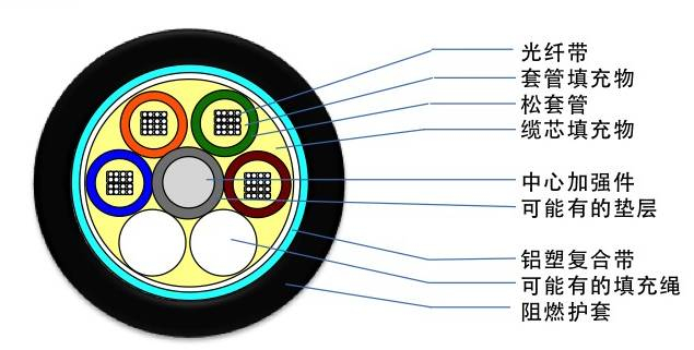 "室外用、非金属加强件、光纤带油膏填充、铝-阻燃聚乙烯外护套"