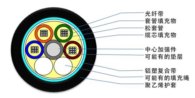 "室外用、非金属加强件、光纤带油膏填充、铝-聚乙烯外护套"