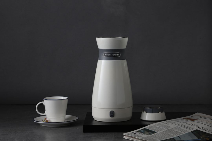 这款电热水壶,外观带有些英式风味,简洁又不失气质,像是一个花瓶。区别于其他的水壶,它少了把手,整体看起来更加圆润流畅,十分有质感。