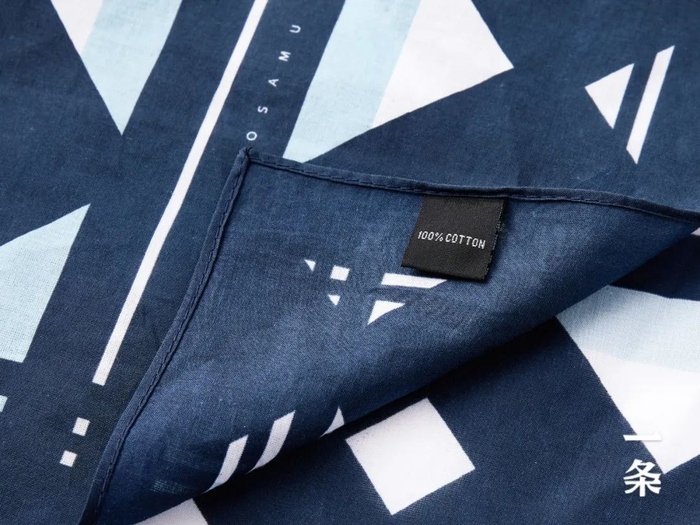 太宰治偏爱深藏蓝色和服,方巾也以藏蓝为主调,选用百搭的菱格图案。