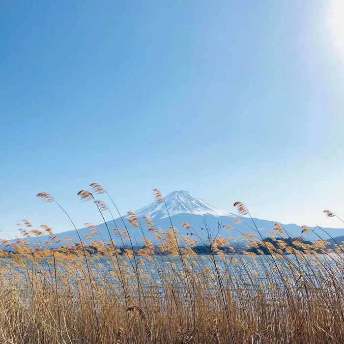 运气好的话,还能看到他笔下的风光:透着晶莹的蓝色,富士山湛蓝欲滴,泛着青白的光,像个水精灵一般悄然伫立。