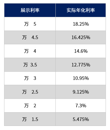第一点,借贷成本方面,这类借款产品大多以“日利率万x”计息。