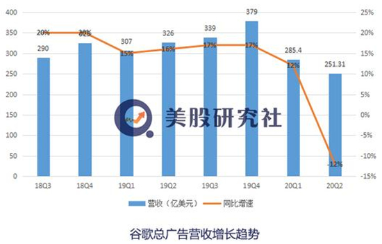 下降的主要原因,在于旅游、零售等广告投放受疫情影响严重下滑。从业务类型来看,谷歌的广告业务非常依赖酒店、旅游等广告主。根据eMarketer的数据显示,2019年旅游约占谷歌搜索广告收入的11%。