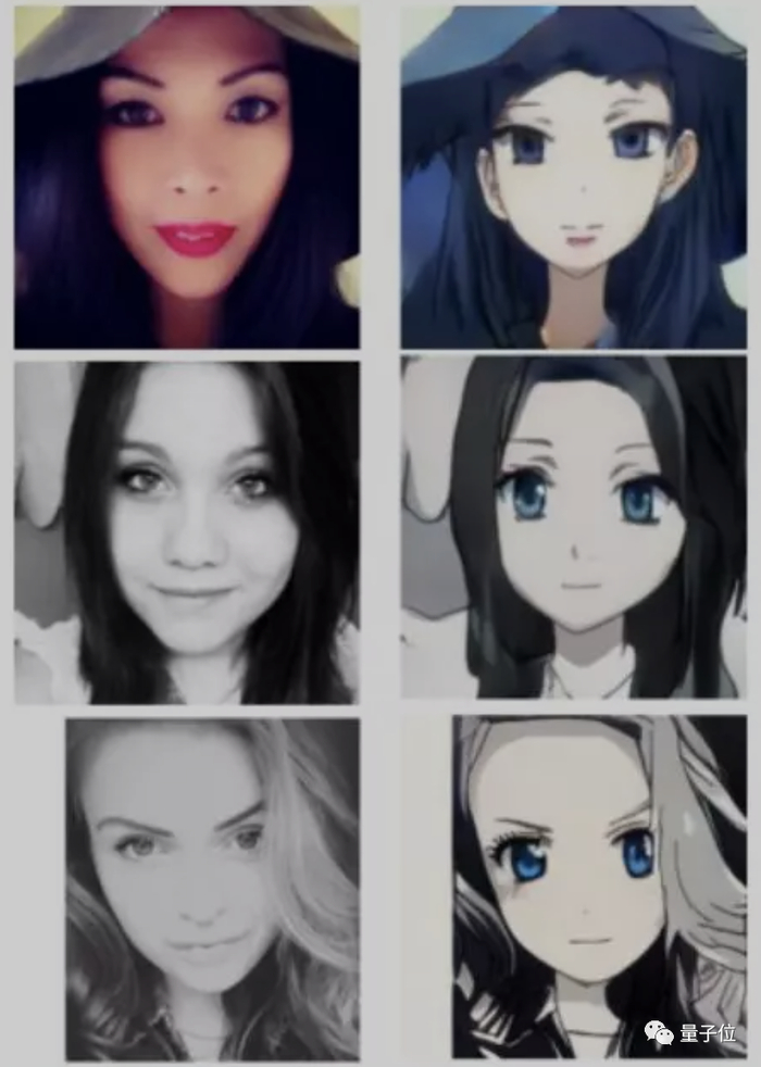 基于此,去年香港中文大学贾佳亚教授团队,就曾提出过一个加强版的CycleGAN,可以将人脸照片转化成如同手绘图像,甚至还能反向转换,将二次元的卡通图像,转换成现实中可能的样子。