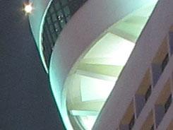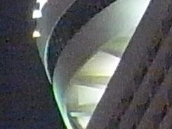 这一组样片中,同样是佳能G10的色散表现相对占劣势一些,红边相当明显。尼康P6000和Panasonic LX3在这里的表现要比上一组样片中的情况要好,紫边并不明显,不过尼康P6000由于机内处理不是很尽人意,还是使图片质量有所下降。理光GX200虽然也没有非常明显地表现出色散的情况,不过炫光倒是比较严重,这组样片截图中,Panasonic LX3表现稍好。