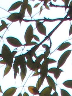 通过这种相对极端的环境来拍摄,可以比较有效地测试出各相机的镜头的紫边状况。从100%放大的原图上看,佳能G10的镜头在色散方面相对严重一些,其中红绿边可以说很明显可以看到。其次是尼康P6000和Panasonic LX3,紫边的情况相对要弱一些,不过尼康P6000可以明显看到机内锐化而使边缘过份锐化的情况,Panasonic LX3表现则自然许多。紫边方面表现最好的是理光GX200,可以说是比较难看到紫边了,色散可以说控制得非常优秀。