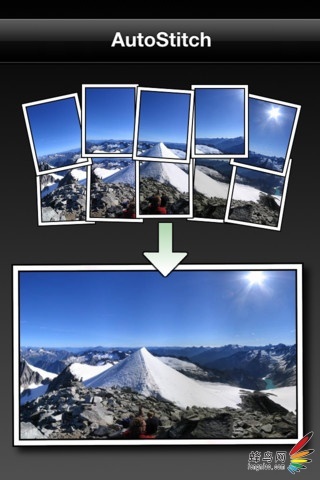 AutoStitch Panorama不仅可以在App中进行拍摄然后组成全景效果,还可以使用iPhone相机将之前按照全景方式拍摄的多张照片拼合为一张全景照片。