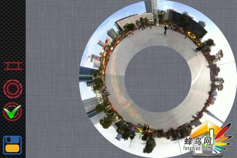 360 Panorama是iPhone上非常经典的一款全景摄影App,该软件也采用了自动拍摄的方式,全程只需按一次开始按钮,之后只需握稳iPhone,平缓的转动身体,照片会逐步的被拍摄到一个虚拟的360空间中,拍摄完成后,软件会对照片进行渲染,完成后即可输出。