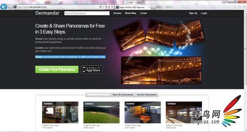 Dermandar最初是一个让用户免费发布全景照片的王长,使用者可以上传自己拍摄的全景照片,借助网站的Flash查看其可以旋转、放大照片进行查看。近期Dermandar发布了该网站的第一款全景iPhone摄影应用,起初只支持iPhone4 ,近期更新之后支持iPhone3Gs等机型了。