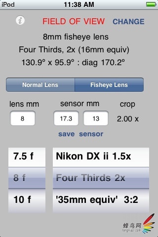 PanoCalc中内置了众多镜头数据和单反机身数据,镜头从常用的标准变焦镜头到鱼眼镜头全部包括,可以很快计算出全景拍摄角度。在辅助计算方面,PanoCalc最多10排照片的角度及重叠量等计算。
