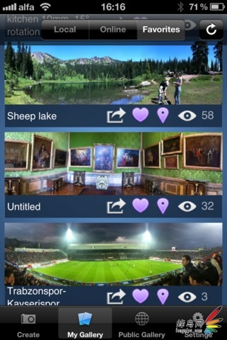 Panoramatic 360支持白平衡锁定功能,可以保证每张拍摄出的照片白平衡以及亮度保持一致。不过该App美中不足的是没有自带照片分享功能,即使上传到软件内的分享社区也无法在网页中查看。