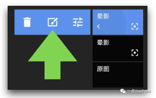 别忘了点晕影后,再点击下面箭头所指的图标,就是蒙版的界面: