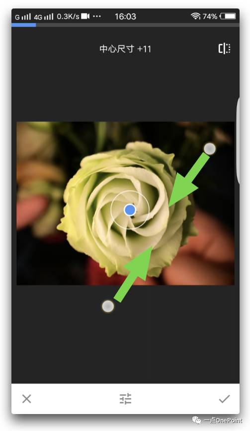 在这个工具中,双指开合手势,可以改变中心区域的大小: