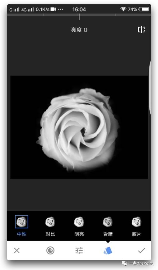 接下来,只需要用 Snapseed 中的黑白滤镜简单的去掉颜色就好了。