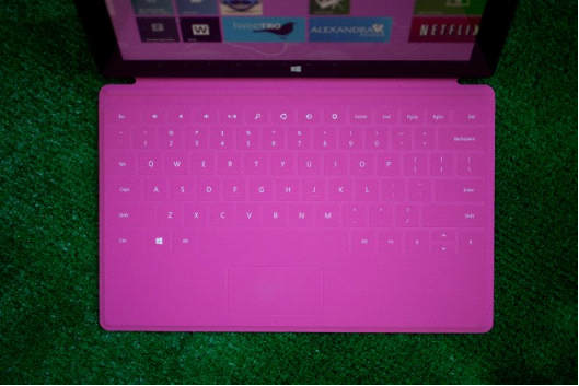 接下来我们看看3mm的超薄Touch Cover键盘。自从Surface亮相以来,人们对它疑虑纷纷。它是否真的那么容易打开和关闭?它好用吗?它真的能用吗?这些问题的答案都是“是的”。 实际上这个微型键盘相当美妙,虽然没有实际的物理按键,但你可以打字如飞,输入时不会有滞后现象。但是你也要需要一些时间来习惯它。
