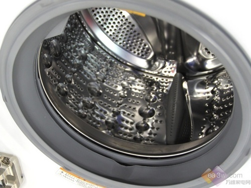 在滚筒方面,在平滑的桶壁上分布了128道弹力筋,内筒旋转带动弹力筋不断击荡水流,产生震荡水波,颠簸式洗涤衣物。在高温、高速、高水位时,电磁门会严 密锁上,防止意外发生。45°开门设计方式,也非常得心应手。蓝色的舱门垫即是采用了AMT防霉除菌技术而制造的。