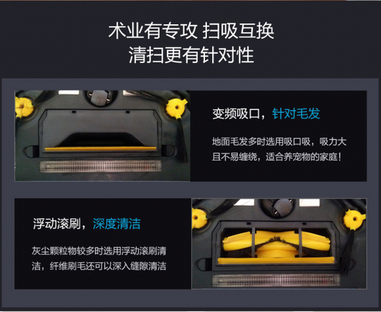 所以建议选择滚刷和真空吸口可相互更换的款式,普通垃圾多用滚刷,毛发多换成真空吸口效果更好。