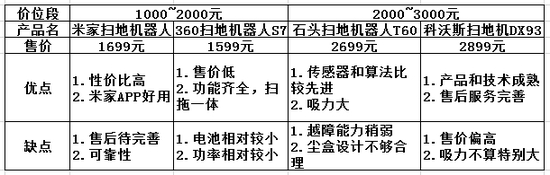 所以本次推荐的扫地机器人分成两个价位区间:1000~2000元档和2000~3000元档。