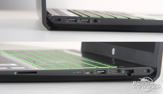 接口方面,机身左侧只有2个USB 3.0接口和一个耳机麦克风二合一接口,而机身的右侧则是电源接口、网线接口、HDMI接口、USB 3.0接口、Type-C接口和一个SD卡读卡器,这样的配置对于玩家来说是相当够用了。
