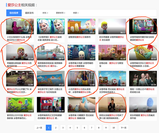 在YouTube上,以儿童特别是幼童为目标的荒谬影片非常之多。更令我震惊的是,这类视频在国内的网站上也不少,在孩子们常用的优酷、爱奇艺、腾讯、搜狐等视频网站上,都可以轻而易举地搜索到这样的视频。