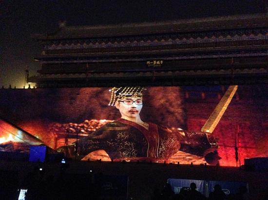 夜幕降临,寒夜中古城西安格外宁静。忽然,伴随震撼动感的音效,安远门城墙上浮现变幻的炫彩。英雄、旍旗、战火、刀光剑影……逼真的3D动画在古老砖墙上闪烁,奇妙的违和感让观众沉浸其中。更让人诧异的是,动画明明讲的是荆轲刺秦的故事,然而仔细一看,那秦王分明戴着一副现代的黑框眼镜,长了一副著名主持人汪涵的脸。