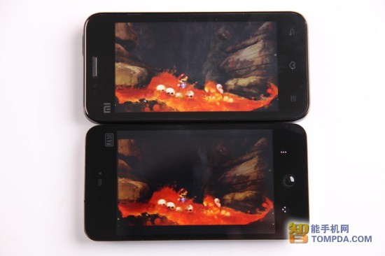 而 从显示效果上来说,通过下图对比,我们可以发现魅族完胜小米,虽然材质同为ASV,但魅族的分辨率要高于小米手机,在画面精细程度上自然是比较占优,而在 颜色鲜艳程度上也是魅族胜出。但可惜的是魅族MX的非主流分辨率对游戏和软件的兼容性有一定影响,而小米手机则完全不用担心兼容性的问题,可说魅族MX和 小米在屏幕上各有千秋。