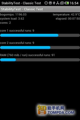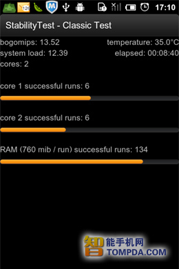 两款手机都是发热情况都是不容乐观。小编就通过软件Stability Test来进行测试。这款软件是通过满负载运行CPU来测试发热情况,经过测试发现魅族MX的发热现象十分严重,仅用时8分钟机身温度就突破了42℃,而小米则仅有35℃。