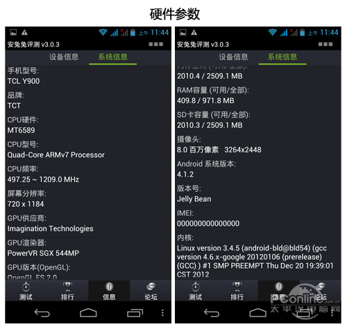 TCL Y900参数 | |
