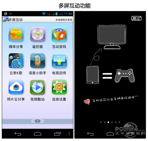 TCL Y900有几个小有特色的功能,一个就是上面这个多屏互动,可以将手机和TCL电视深度互联,还能当遥控器使用,前提是两者得接入同一个网络下。