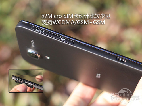 MT6589的最大好处就是,原生就支持双卡双待设计了,不需要进行二次开发。由于机身比较薄,TCL Y900的两个卡槽都是Micro SIM设计。