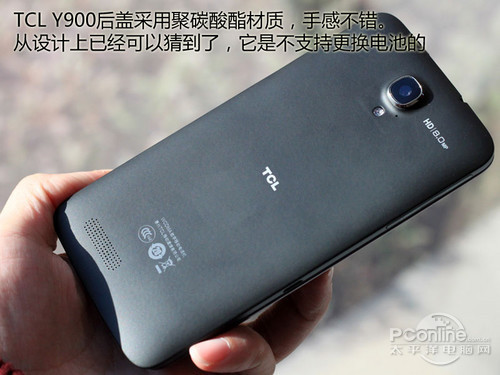 TCL Y900的设计如果说要找到什么相似的感觉,那它的参照物大概是联想K860和HTC One X。由于具有5寸屏幕,很自然就让人想到了联想K860了,由于机身薄了,并没有联想那么笨重。而说其像HTC,主要是机身后盖的设计,特别是那种材质的感觉。