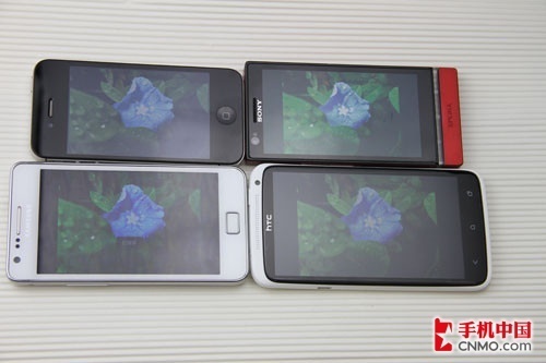 马上就要到,相信大家的户外活动也多了起来,家人朋友之间一起旅游,一起打球等等,估计谁都有过烈日下打电话的尴 尬,拿出手机发现一片白茫茫,那感觉确实十分郁闷。上图就是我们还原当时的尴尬情景,在强光下,我们明显的看出,这四款手机均有明显的泛白现象,而HTC One X最为明显,iPhone 4S紧追其后。相比之下采用高亮技术的索尼LT22i的表现就十分不错,显示效果十分到位。搭载魔丽屏的三星I9100表现也很不错。