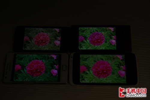 在黑暗环境下,索尼LT22i依然秉承它的高亮度的作风,显示图像清晰,而且搭载SLCD2屏的One X也在暗光下有令人满意的表现。也许是因为SAP屏色调偏冷,三星I9100在黑暗中的表现不尽如人意。IPS屏的苹果iPhone 4S相比其他三款手机屏幕较暗,但也能正常显示出原有的画面。