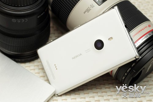 在机身背面的设计上,925的纯景摄像头,有卡尔蔡司认证,遗憾的是只有双LED闪光灯,而不是传说中的氙气闪光灯。而由于降低机身厚度,为 了能让镜头保持水准,所以我们看到了微微凸起的摄像头,这也是目前厂商采用的普遍做法。鱼与熊掌不可兼得,摄像头与机身厚度似乎不兼容。