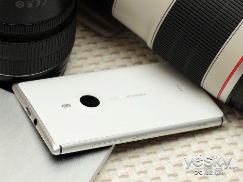 所以我们看到了一款携钢铁之躯,硬汉气息十足的手机。但如果大家对这款手机的看法局限在此,那么诺基亚还会给大家带来更多的惊喜。诺基亚近年来一直在强调手机在拍照领域的建树,这次诺基亚925带来的是870万像素的纯景相机和更多的拍照滤镜功能。同时手机搭载6枚镜片,比之前的 920更多一些。这些等等,都是925值得期待的地方,也是今天我们评测的重点。