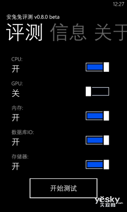 安兔兔是一款对移动处理器的图形处理能力、运行内存、数据库I/O及内部存储器等进行全面的硬件基准性能测试的应用。不过由于安兔兔在GPU 测试环节出现闪退的现象,因此我们将该环节的测试关闭。根据实际的测试成绩可以看出,诺基亚Lumia 925的CPU整数与CPU浮点运算测试得分高达3738 分与4446分,表示这颗骁龙MSM8960处理器的性能运算能力还是非常出色的。