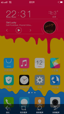 vivo Y29L的锁屏界面壁纸可根据自己的喜好自行更换,在此界面中,时间/日期设计在正上方,当用户用手指向下轻滑昵称上面的圆圈,便翻转到音乐播放器,这样 不用进入主界面即可收听提前存储的音乐,非常便捷。当然,如果你想更换锁屏界面圆圈里的壁纸和昵称,轻按圆圈3秒即可进入更换界面。