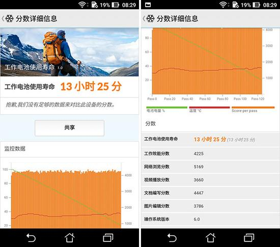 我们使用PCMark进行续航测试,超过13小时的续航时间非常让人惊讶,这是一个非常优秀的续航表现,而目前的大多旗舰机型,仅有7-8小时的测试续航时间。