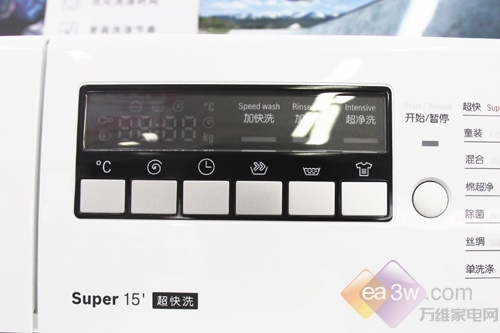 在洗涤功能方面,该款洗衣机有国际认证的羊毛洗程序,用此程序洗涤羊毛衣物可降低磨损率,减少衣物缩水。另外一个有特点的程序是婴儿95℃煮洗,该程序适 合宝宝贴身衣物的洗涤,可充分溶解洗涤剂,并且能有效杀菌。此外,该洗衣机还有预洗、超快洗、强力洗、童锁等功能。