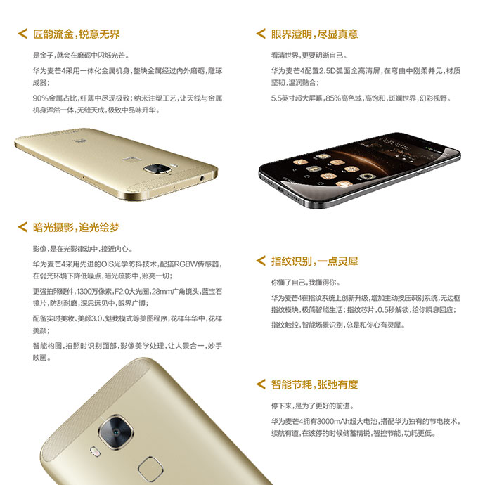 华为于7月30日晚间在青海湖举办新品发布会,发布麦芒4手机,新机加入指纹识别技术,并且采用全金属机身。