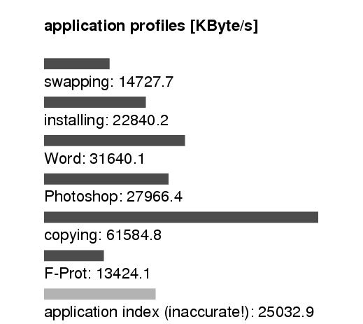 测试软件:分别用FDbench1.01\HD Tach3.0.1.0\HD Tune2.53\ATTO DiskBench3.2\c't h2benchw这五款软件测试,另外使用WOW(魔兽世界中文版2.3)游戏目录进行实际拷贝测试,大家可以选择熟悉数据的进行参考。