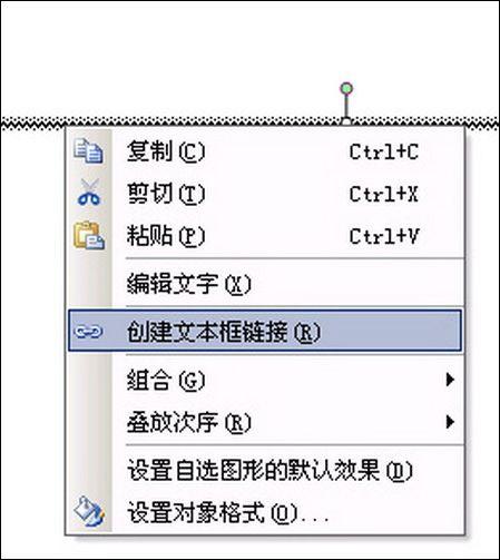 首先,分别在“自我鉴定”所在的两个单元格中各插入一个横向的文本框,再分别将其边框设置为“无线条颜色”。然后,用鼠标右击第一个文本框的边框,在右键菜单中选择“创建文本框链接”(如图2):