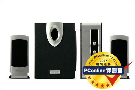实力雄厚的麦博集团在全球范围内都享有较高的知名度,拥有自己的扬声器厂、电子厂、五金模具及加工厂,塑胶模具及注塑厂。麦博 M-111是其经济型的2.1声道多媒体音箱产品。麦博 M-111采用的是4英寸低音单元,输出功率为10W,卫星箱为2.5英寸,输出功率为5W,外观上中规中矩,较为保守。M-111虽然是其经济型的廉价产品,但是其失真度做得还是不错的,仅为3%。与漫步者 R101T1一样,麦博 M-111也提供了方便的线控功能,具备了开关及音量调节功能。
