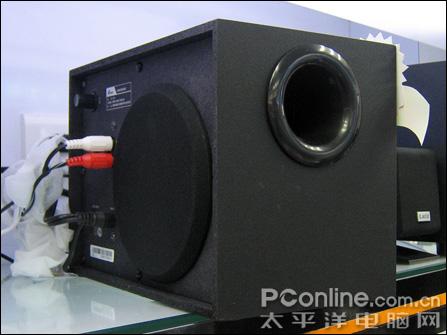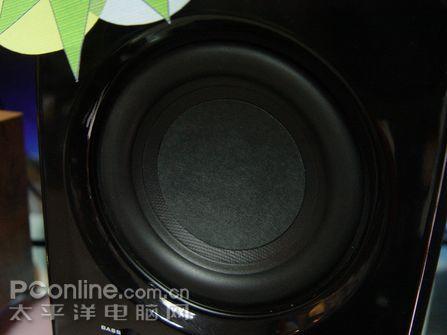 这款音箱的低音炮采用了常见的后倒相设计,卫星箱则为密闭箱结构,卫星单元为常见的2寸全频带纸盆,低音单元是5寸的振膜。