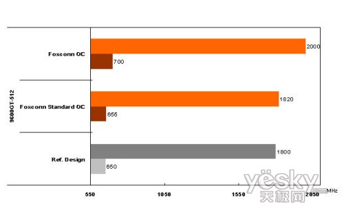 目前富士康发布的9600GT 512MB包含两个版本,目的在于带给玩家更好的游戏体验。两个版本对应核心以及显存频率分别为655/1820MHz、700/2000MHz,相对于标准版本的650/1800MHz提升幅度显著。富士康在2007年在全球获得了超过80个奖项,品牌显卡在性能与品质上广受认可。相信9600GT还会继续带给大家出色的性能,卓绝的品质。