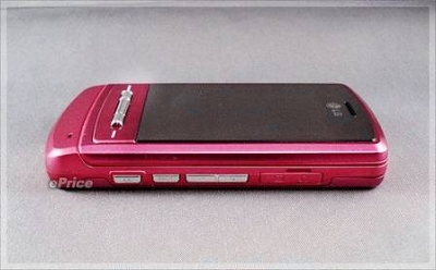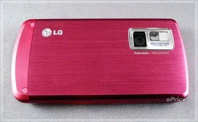 Pink在手机上并不是头一遭,之前MOTO也玩过Pink,而且是又亮又可爱的大桃红V3;不过类似的颜色搭配在不同的手机上,就有著截然不同的效果。LG Shine2.2寸的镜面屏幕搭配,就有如一面桃红色的镜子,看起来十分的可爱。▲背面也整面换上了桃红色的新装,金属纹路加上Pink,展露出不一样的风采。背面滑出上盖后,可以看到上盖的背面也同样用桃红色处理。