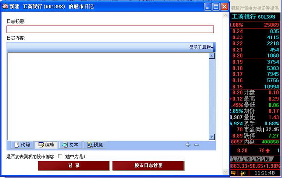当您在看股票的时候可能会有些想法或者交易记录希望记录下来,这样以后可以随时查看。“同花顺”就为您提供了这样一个平台。